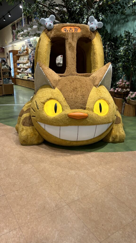 入口から見えているけど、中に入るとおっきい猫バスが待ち受けてます。(=^・^=)