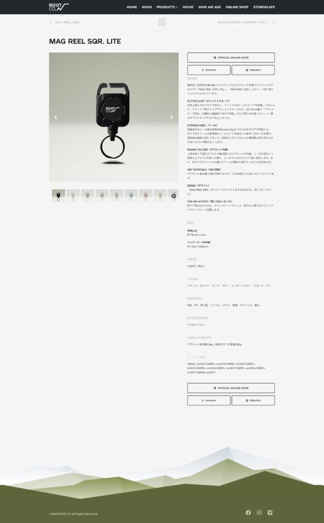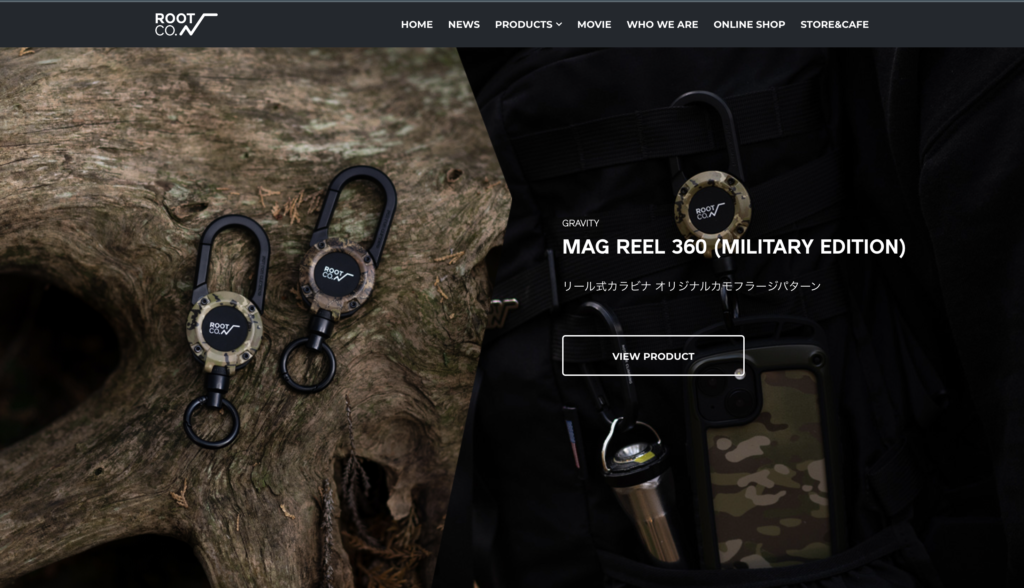 ROOT CO は神奈川県箱根町に本拠地を構えるモバイルギアブランドで、アウトドア向けのカラビナやストラップ、スマートフォンケースなどを販売しています。