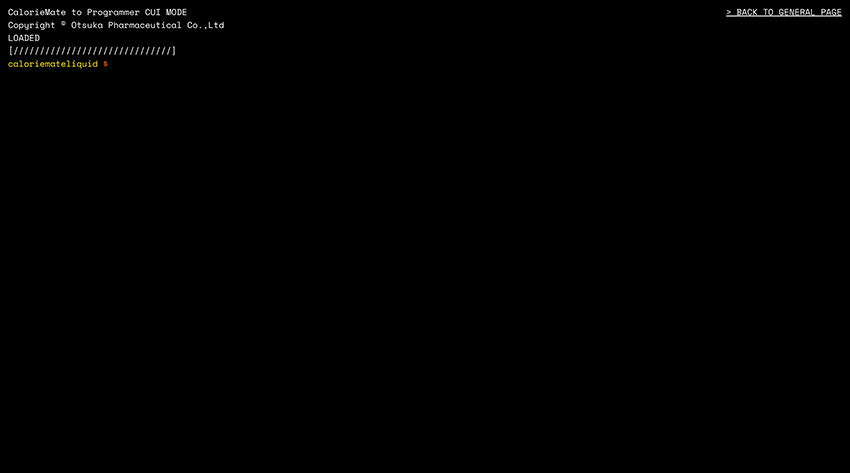カロリーメイトから、すべてのうちこむ人へ。プログラマー向け、CUIで操作するWebサイト。 #うちこむ人にバランス栄養