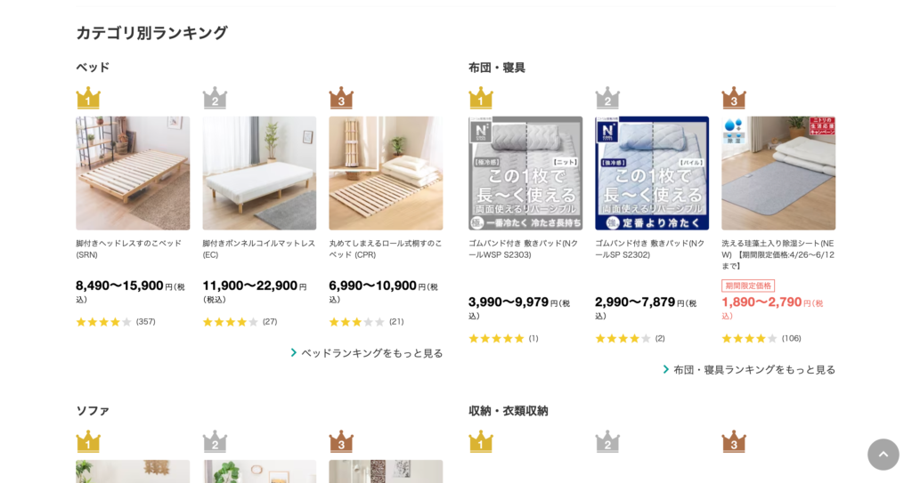 どの商品が人気なのかがひと目で分かります。王冠のアイコンが金、銀、銅でランキングだと認識しやすい色なのも素晴らしいと思います。