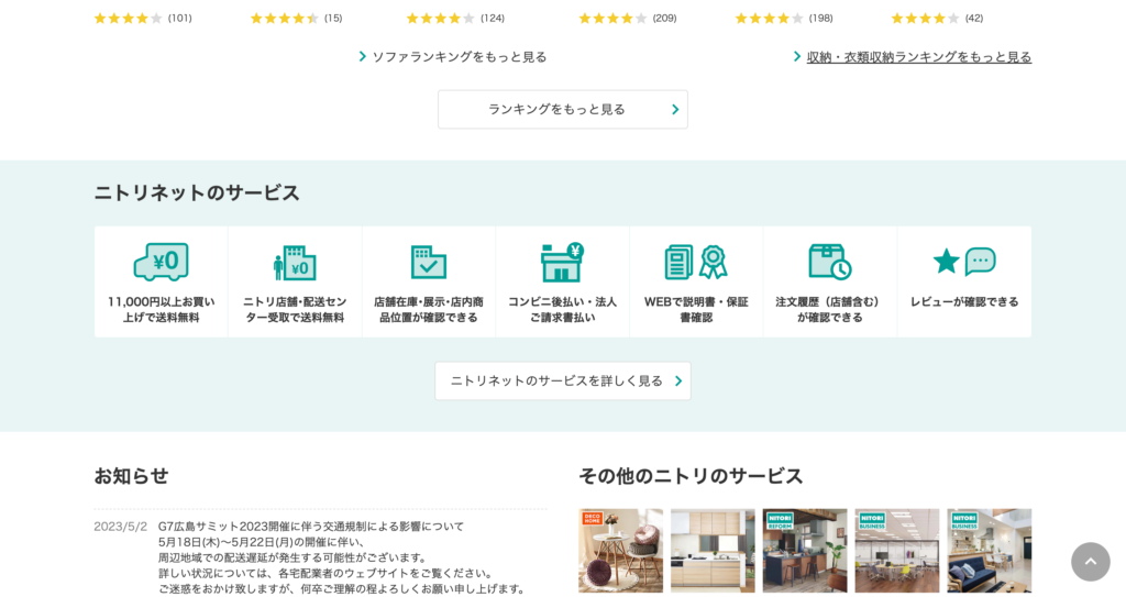 そこで、今回はニトリのWebサイトの良いところを紹介したいと思います。