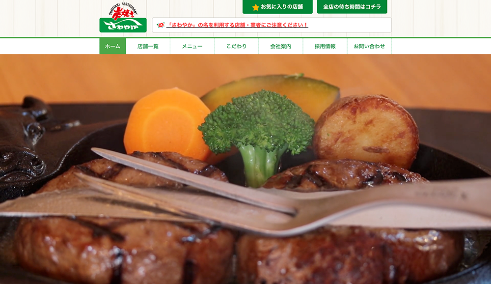 メインビジュアルにハンバーグの動画が表示されて食欲をそそります。
