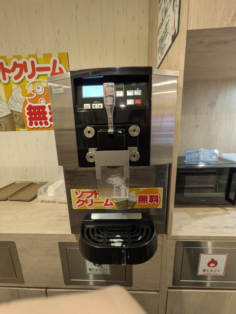 こんな感じのマシンで自分でソフトクリームを巻きます。綺麗に巻くのは中々難しいです。