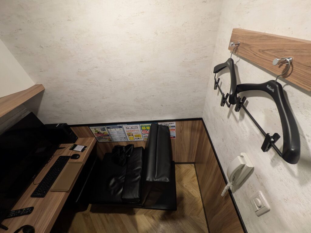 ここはリクライニングルームですがフラットルームもあります。PC画面も大きいので動画鑑賞も楽しいです。