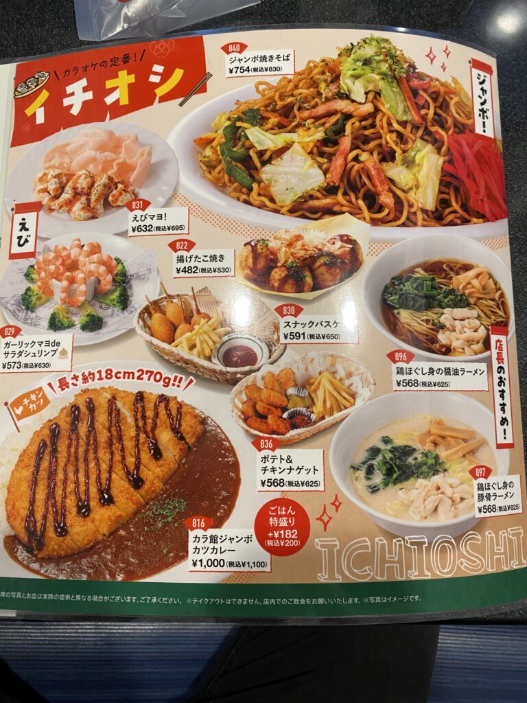 ここのお店では、注文する際はスマホを使いました。全てのフードメニューの写真を貼ることはできませんが、飲み物など他にもたくさんメニューはありました。そのため、自分みたいに1人ではなく何人かで行く際は、たくさん頼んでみんなで歌いながら食べて楽しむこともできると思います。