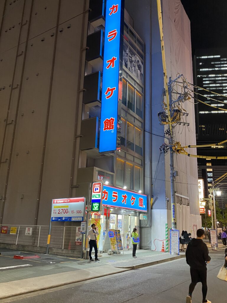 場所は、トライデントコンピュータ専門学校の玄関の前の横断歩道から真っ直ぐ歩いてすぐ左側にある、「カラオケ館(名駅3丁目店)」というところです。