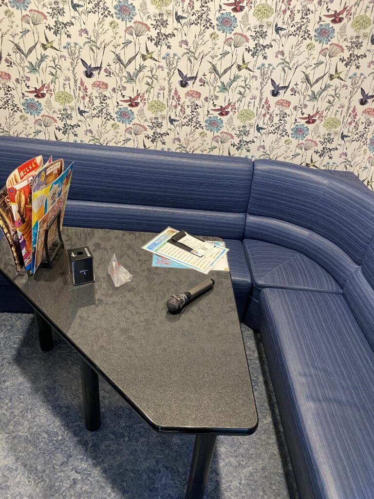 部屋の中は正直自分が今までに言ってきたカラオケ店に比べたら少し狭く感じましたが、2人以上でも窮屈感はあまり感じないと思いました。モニターも近すぎることもなく、小さすぎることも無かったです。1人で行くとどうしても少し寂しく感じることがどうしてもありますが、逆にここぐらいの部屋の広さのおかげかあまり寂しく感じることなく、なんなら落ち着くこともできました。