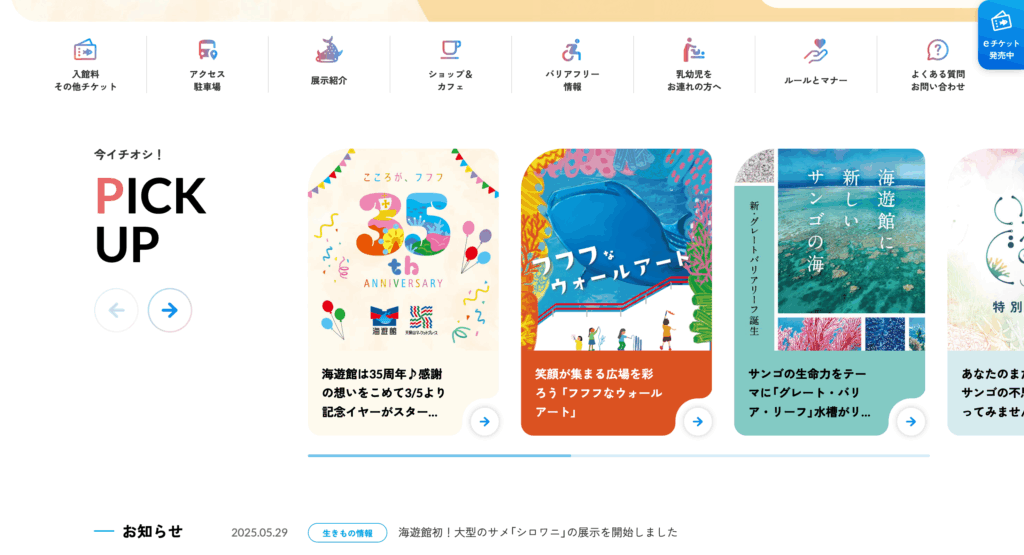季節ごとの特別展示やナイトアクアリウムなどの最新イベントも掲載されています。