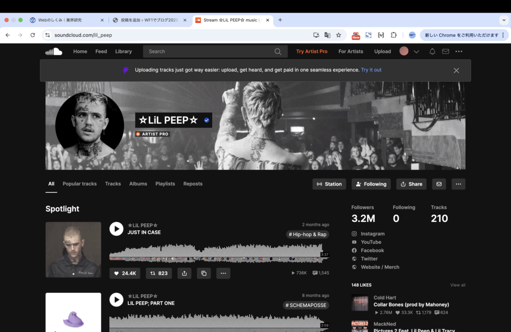 SoundCloudは、いろいろな音楽を見つけることができる、楽しいサイトです。皆さんも、ぜひEminemやLil Peepの音楽を聴いてみてください。